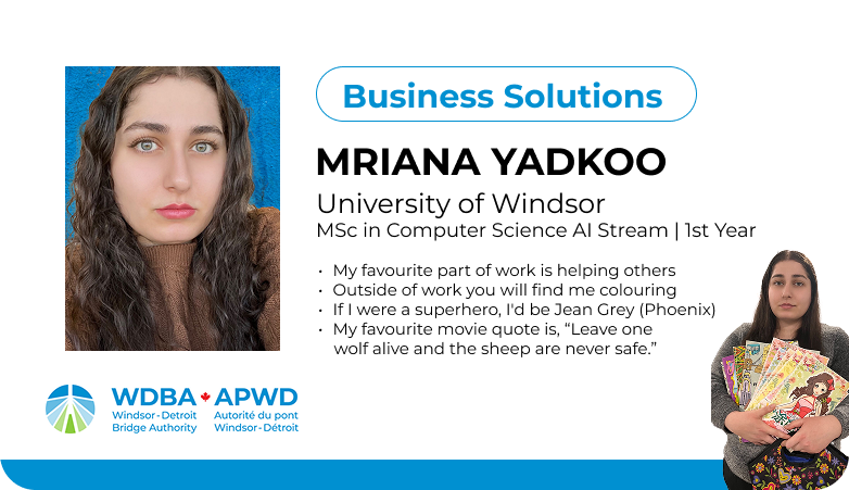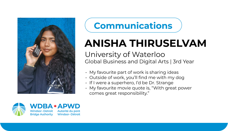 This fall, fifteen students joined WDBA for a four-month term, contributing their talents across a range of departments including operations, engineering, communications, marketing and information technology. Each played a unique role in advancing the Gordie Howe International Bridge project, bringing fresh ideas, energy and new perspectives to the workplace.